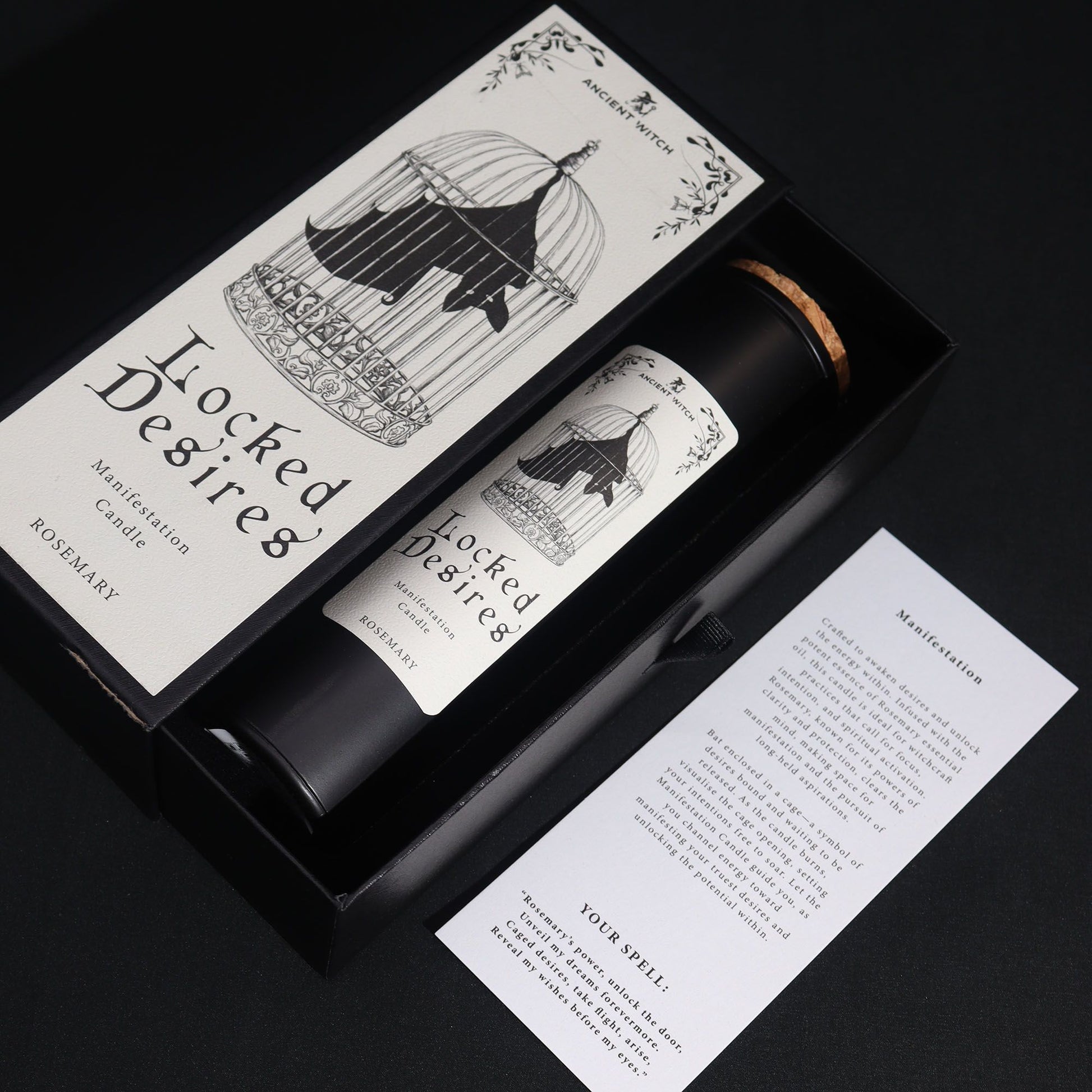 Every candle is presented in an elegant gift box and comes with a ritual spell card.
